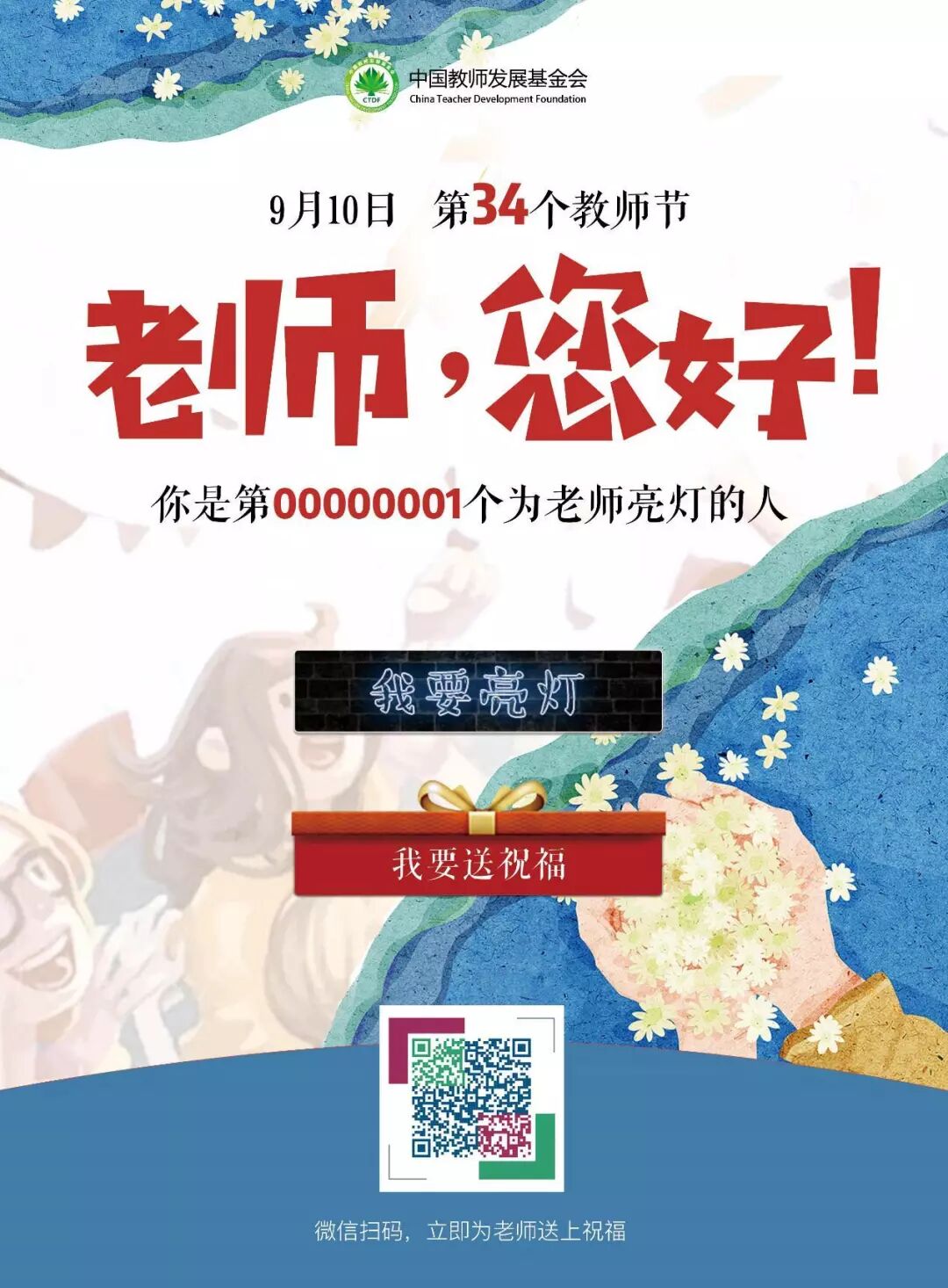 无论此刻你身在何方,快识别上方活动海报图片中的二维码,为老师送上祝福吧!