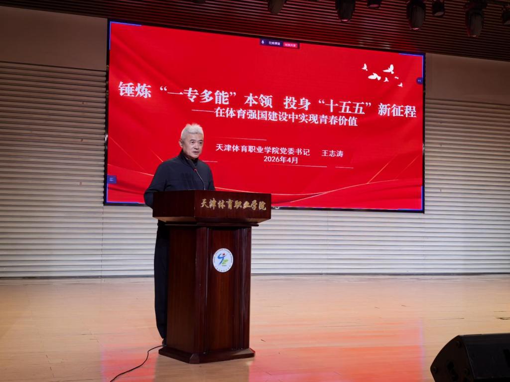 他向全体同学发出号召,要胸怀“国之大者”,把个人理想融入国家战略与城市发展;要立即行动、勤学苦练,在实践中锻造过硬本领;要拥抱变革、终身学习,勇立时代潮头。以“使命在肩、奋斗有我”的精神状态,在体育强国建设与天津体育强市建设中贡献青春力量。